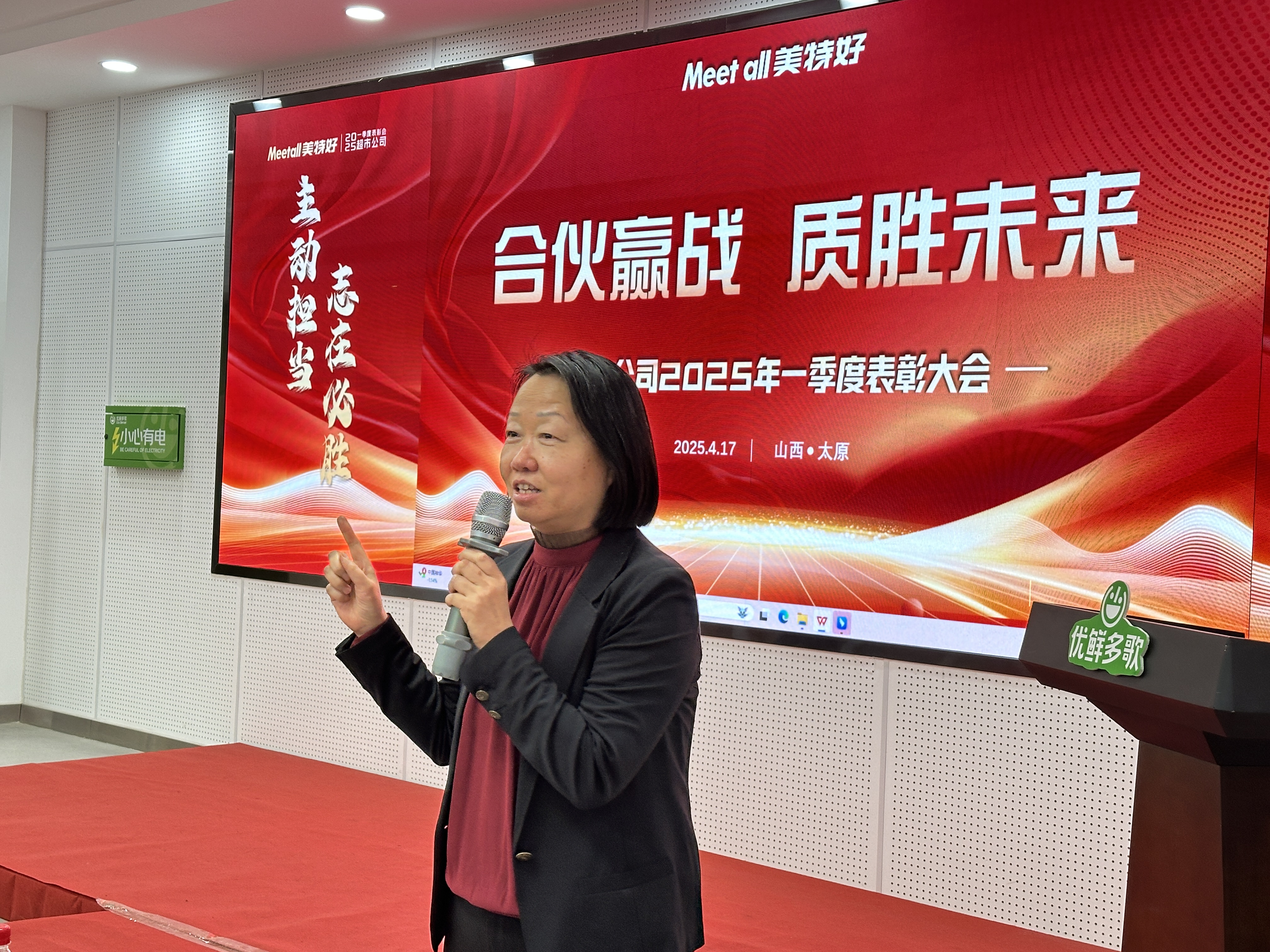 4月17日,美特好超市公司2025年第一季度表彰大會(huì)在優(yōu)鮮多歌清徐物流園大會(huì)議室隆重舉行。集團(tuán)總裁團(tuán)隊(duì)、各事業(yè)部及門店代表等270余名合伙人齊聚一堂,共同回顧一季度奮斗成果,表彰先進(jìn)典型,并擘畫二季度高質(zhì)量發(fā)展藍(lán)圖。本次大會(huì)以“合伙贏戰(zhàn)·質(zhì)勝未來”為主題,充分彰顯美特好“以顧客為中心,以奮斗者為本”的核心價(jià)值觀,傳遞全員齊心沖刺年度目標(biāo)的堅(jiān)定信心。